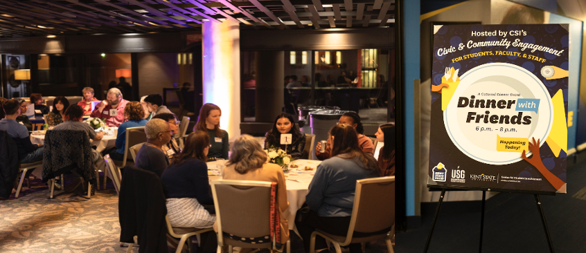 On Feb. 26, a unique event brought together a group of about 40 students, faculty and staff in The Schwebel Room on the third floor of the Kent Student Center for dinner and conversation. By design, the guests come from different areas of the university, and many might have not known each other before meeting at this event. They dined together and had focused discussions about topics of mutual, community interest.