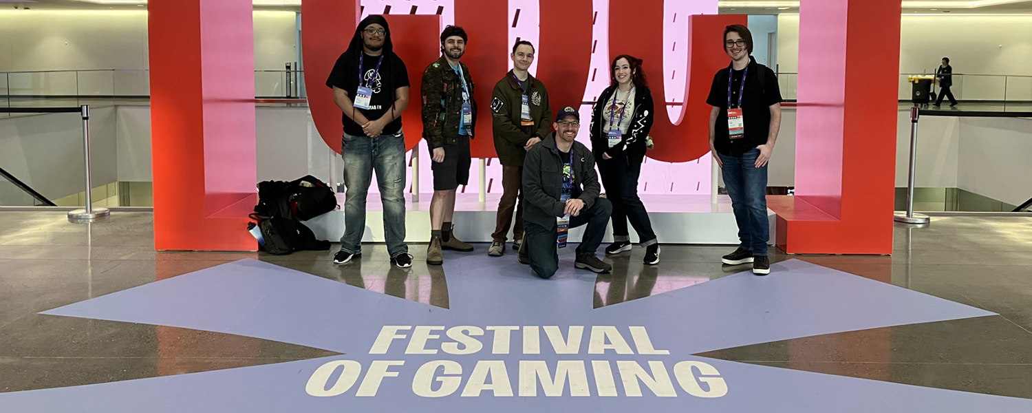 They, along with Associate Professor Chris Totten, traveled to the Game Developers Conference (GDC) at the Moscone Center in San Francisco over spring break. The contingent included current students Mario Peterson and Jai Amos, along with Grace McCormack (a Fall 2025 graduate) and alums Max Kunze and Joey Gage, both working in the industry.